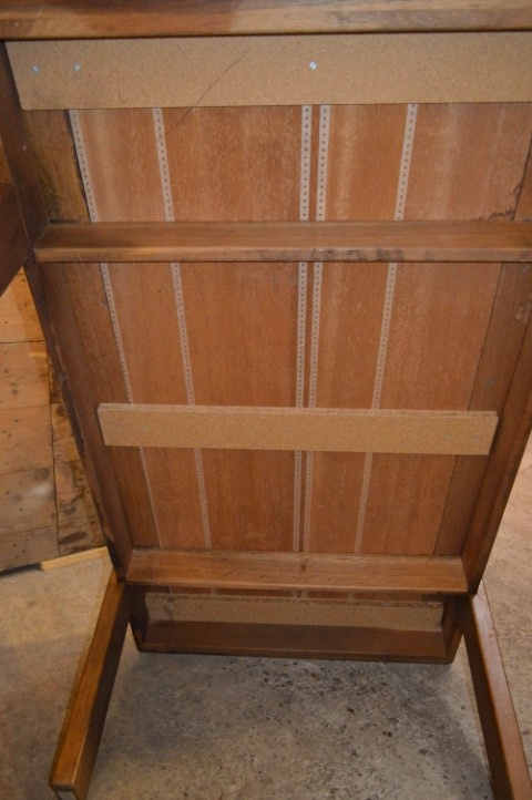 Het levendige blad toont natuurlijke kleurnuances en geeft de tafel een sfeervolle uitstraling. De salontafel staat stevig op een solide onderstel en past moeiteloos in moderne, landelijke en industriële woonstijlen. Het meubel verkeert in gebruikte staat met lichte gebruikssporen, passend bij een charmant tweedehands eiken meubel.
