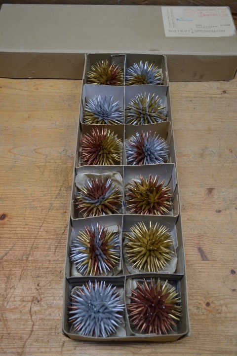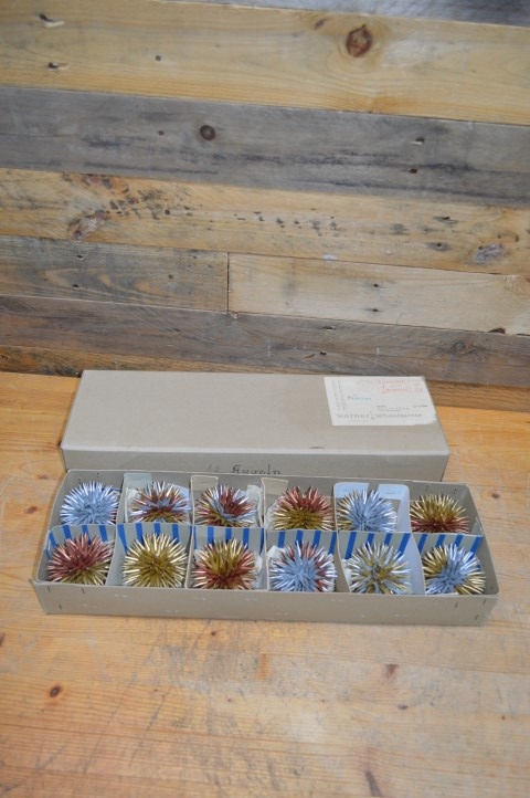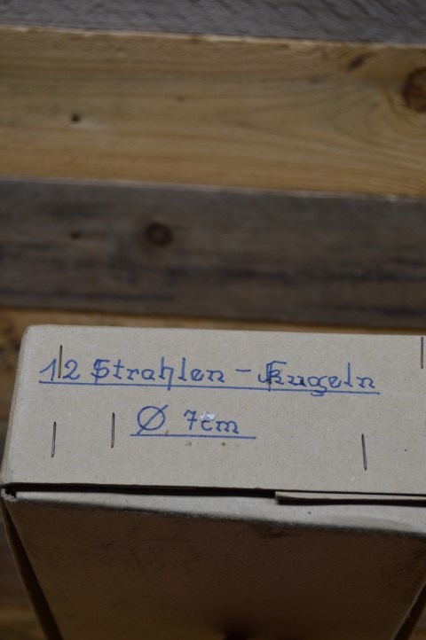 Deze oude ballen worden geleverd in een handige kartonnen opbergdoos en hebben een doorsnede van 7 centimeter, waardoor deze elegante papieren kerstversiering bovendien een blikvanger is in iedere kerstboom.
