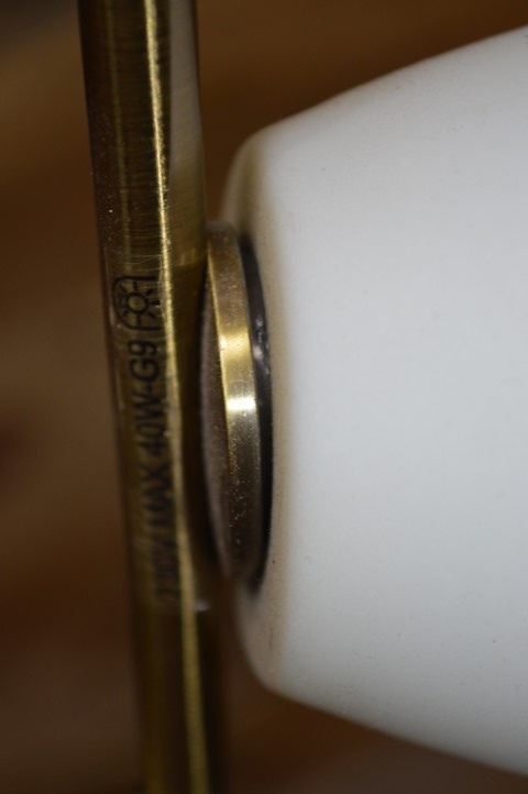 De lamp heeft, omdat deze eerder gebruikt is, wel wat gebruikssporen zoals een vlekje op de lampenkap.
