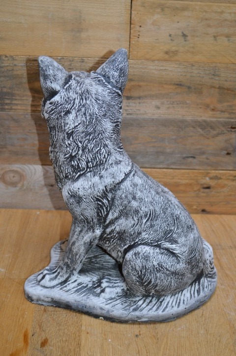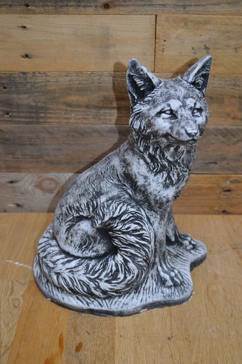 Betonnen tuinbeeld vos rechts kijkend – Deze slimme vos zit waakzaam met zijn blik naar rechts gericht. Hij lijkt alles in de gaten te houden en straalt alertheid en rust uit. Het beeld is natuurgetrouw nagemaakt van beton en is uitermate geschikt als decoratief tuinbeeld.Door zijn fijne details en herkenbare houding is het een echte blikvanger. Of je hem nu op een sokkel zet of los tussen het groen plaatst, deze vos trekt zeker de aandacht.Perfect voor natuurliefhebbers en liefhebbers van wilde dieren in de tuin.