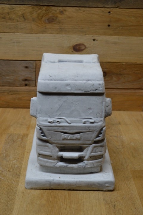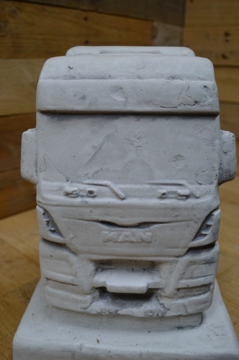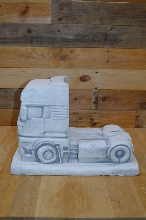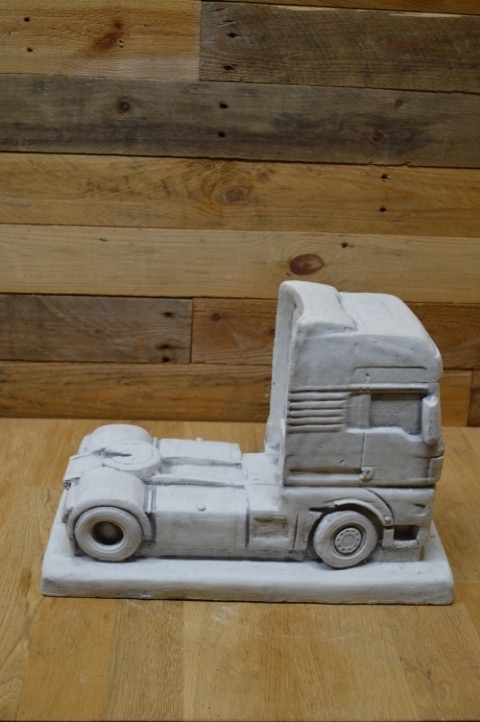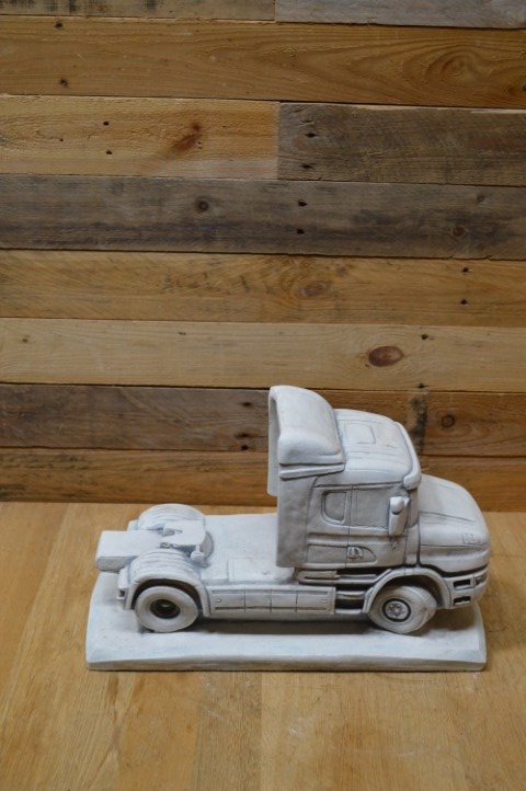 Deze vrachtauto van beton is een prachtig robuust tuinbeeld dat bestand is tegen weer en wind. Het betonnen schaalmodel staat prachtig op zichzelf, maar kan ook worden uitgebreid met een bijpassende oplegger die elders op de site verkrijgbaar is. Of u hem nu buiten neerzet in de tuin of binnen als decoratief object, deze vrachtauto valt zeker op bij liefhebbers van stoere voertuigen.