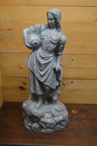 Breng klassieke elegantie in huis met dit gipsen beeld van een vrouw met waterkruik.