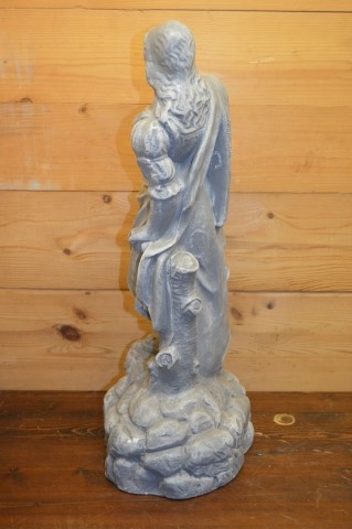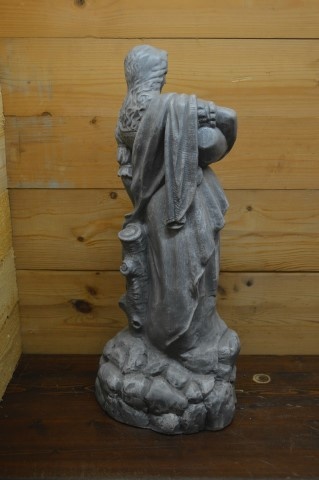 Het hoge beeld rust op een stevig voetstuk en is ideaal voor plaatsing op een vensterbank, dressoir of bijzettafel. Hoewel dit decoratieve beeld niet geschikt is voor buitengebruik, vormt het binnenshuis een stijlvolle blikvanger. De warme uitstraling en verfijnde details maken het tot een prachtige toevoeging aan vrijwel elk interieur.