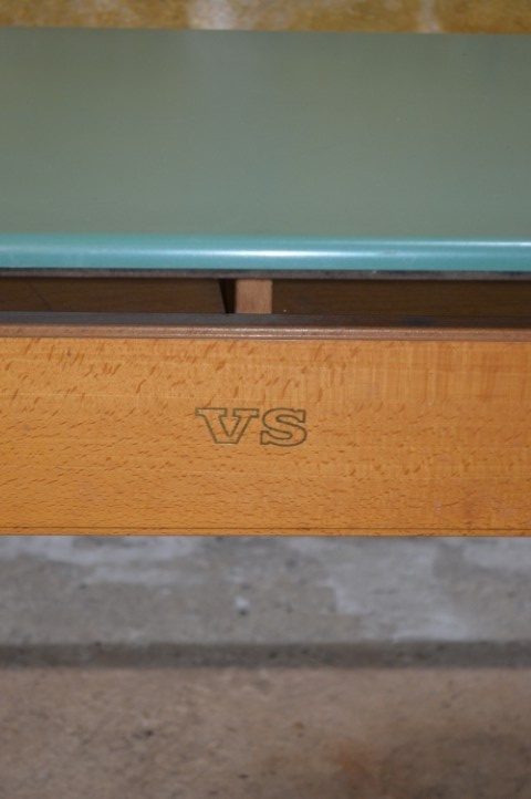 Deze retro schooltafel van VS is een echte nostalgische blikvanger die direct sfeer en karakter toevoegt aan elke ruimte. Dit iconische tweezits model werd gebruikt op scholen en is tegenwoordig geliefd bij liefhebbers van vintage design en authentiek schoolmeubilair.