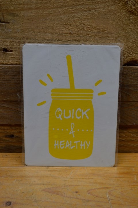 Decoratie voor aan de wand met woorden, Quick & Healthy. Leuk metalen bordje met een frisse print op de voorkant, versier je kamer met deze vintage vorm van decoratie. Dit is een fantastische eyecatcher voor in je keuken, mancave of gameroom.