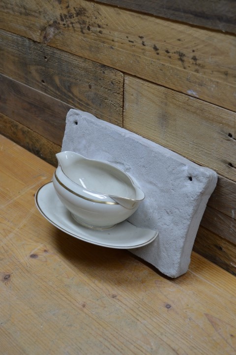 Omdat de juskan verbonden is aan de achterplaat is deze niet meer als servies te gebruiken, maar desondanks kan deze stijlvolle bloempot voor aan de wand overal in huis uitstekend hangen.