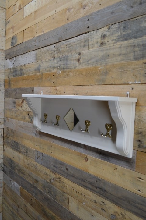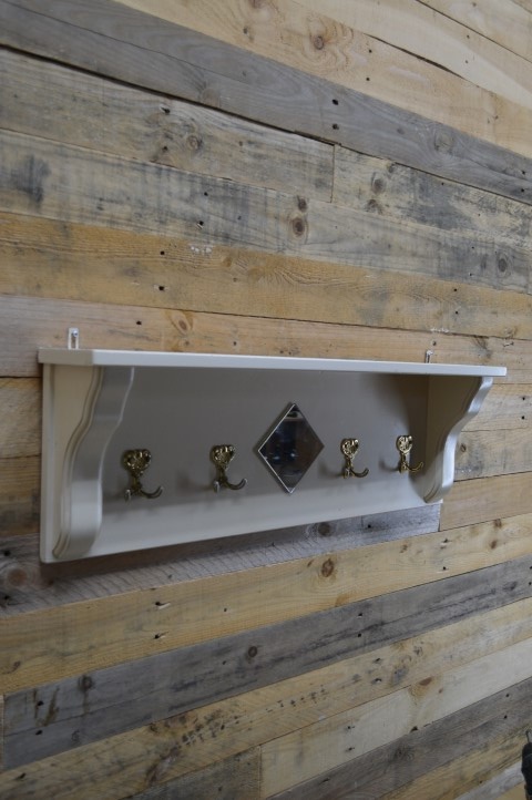 Deze creme kleurige vurenhouten kapstok heeft een hoedenplank en 4 dubbele haken voor uw jassen en tassen en is dankzij het minimalistische design de ideale toevoeging aan iedere thuisgarderobe.