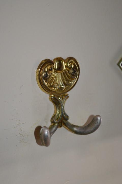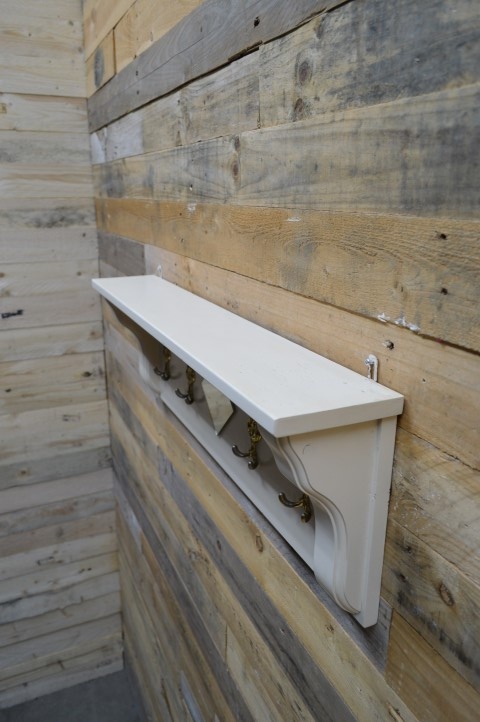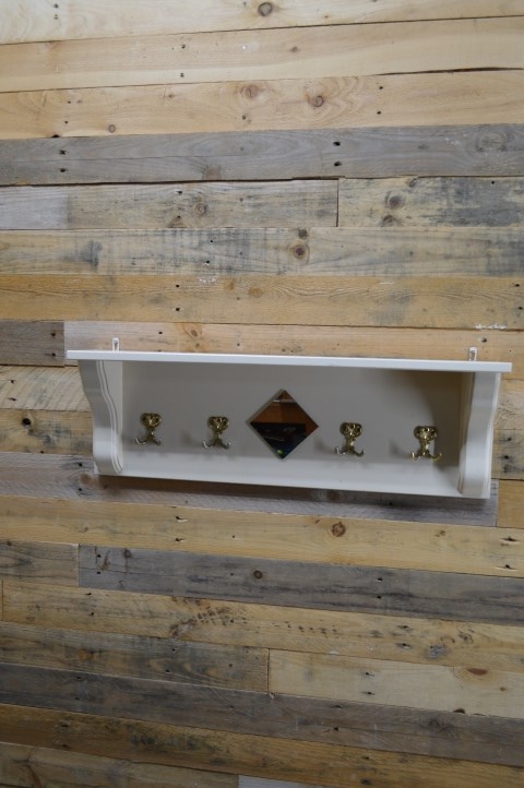 Omdat deze grenen wandkapstok eerder gebruikt is zijn enige gebruikssporen aanwezig, maar ondanks dat verkeert deze mooie creme kapstok nog steeds in goede staat.