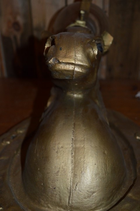 Let op: het elektrische gedeelte dient nagekeken te worden voordat het lampje in gebruik wordt genomen. Daarnaast ontbreekt er een klein stukje van het oor van het paard, wat zichtbaar is maar het karakter van het object niet wegneemt. Hierdoor is dit item vooral interessant voor de liefhebber van unieke, authentieke decoratie of voor iemand die het lampje wil opknappen.