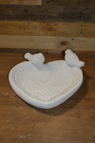 Het betonnen hartvormige vogelbad kan zowel binnen als buiten worden gebruikt. Het is ideaal als tuindecoratie, drinkbakje voor vogels of gewoon als decoratief ornament. Dankzij het stevige beton blijft het duurzaam en winterbestendig. Dit sierlijke beeld trekt de aandacht en brengt leven en gezelligheid naar elke hoek waar het wordt geplaatst.