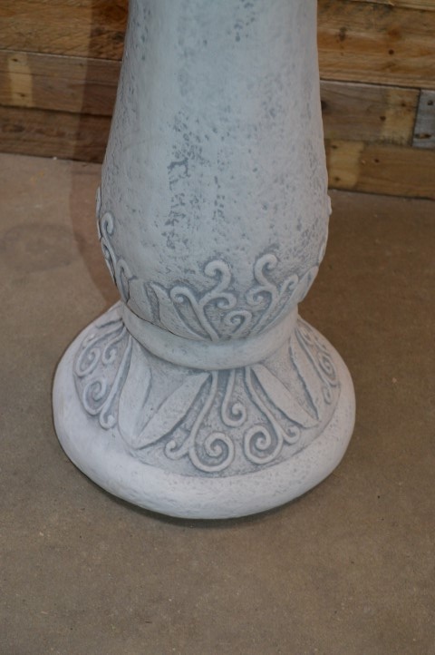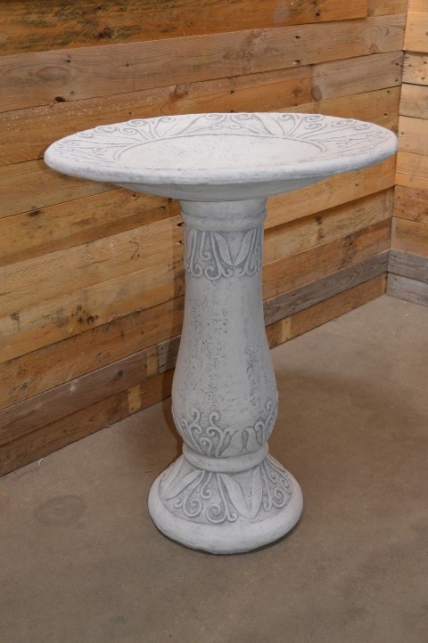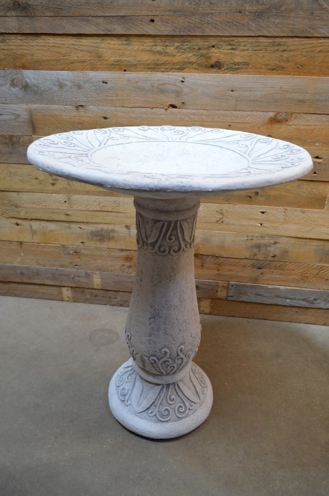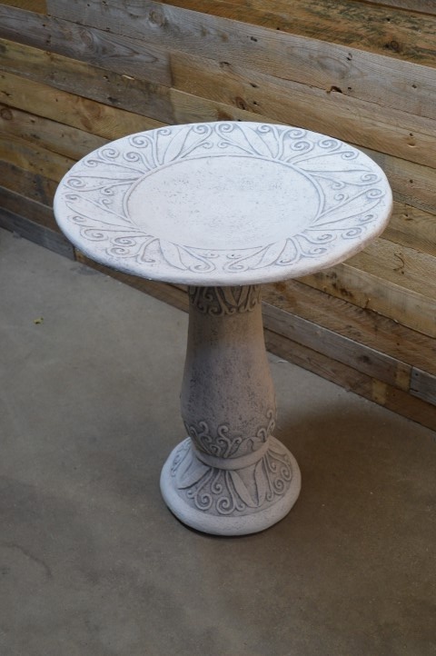 Betonnen schaal op zuil voor tuin – Deze gestileerde schaal op een stevige zuil is een veelzijdig en sierlijk tuinbeeld. Volledig vervaardigd uit beton en daardoor bestand tegen weer en wind.De schaal is geschikt als vogelbadje in de zomer, maar ook als voederbak of zelfs bloembak. Ideaal dus voor wie graag vogels verwelkomt of creatief wil decoreren met planten.let op: de schaal ligt los op de voet en is dus eenvoudig te verplaatsen, maar niet stormvast. Zorg eventueel voor extra stabiliteit bij plaatsing op een open plek.Een stijlvol én praktisch object dat rust en sfeer toevoegt aan elke tuin.