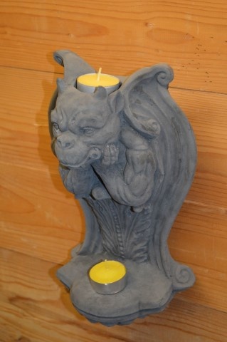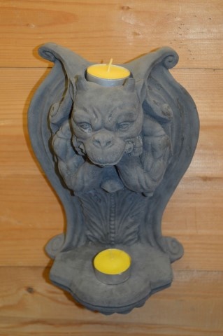Deze betonnen waterspuwer, ook wel Gargouille genoemd, doet dienst als gotisch muuraltaartje en is een unieke combinatie van functionaliteit en sfeer. In de geïntegreerde houders kunnen waxinelichtjes geplaatst worden die een zacht licht verspreiden — perfect voor een mystieke avond in de tuin. De rijke details en klassieke vormgeving maken dit ornament tot een echte blikvanger aan schutting, tuinmuur of beschut terras. Een betonnen kunstwerk met karakter, dat moeiteloos de aandacht trekt.