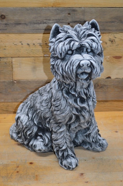 Deze betonnen beeld Yorkshire terriër is een schattig en sfeervol tuinbeeldje van beton, perfect als decoratie voor in de tuin of rondom het huis. Met zijn lieve uitstraling is hij niet alleen een mooie toevoeging aan uw buitenruimte, maar kan het ook een waardevolle herinnering aan een trouwe viervoeter. zijn Dankzij het stevige materiaal is dit beeld bestand tegen alle weersomstandigheden en blijft hij jarenlang een blikvanger.