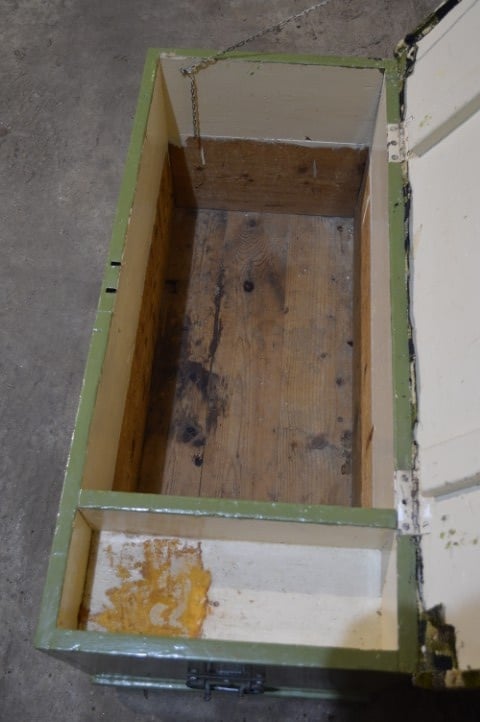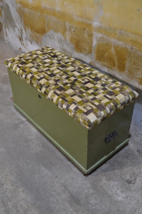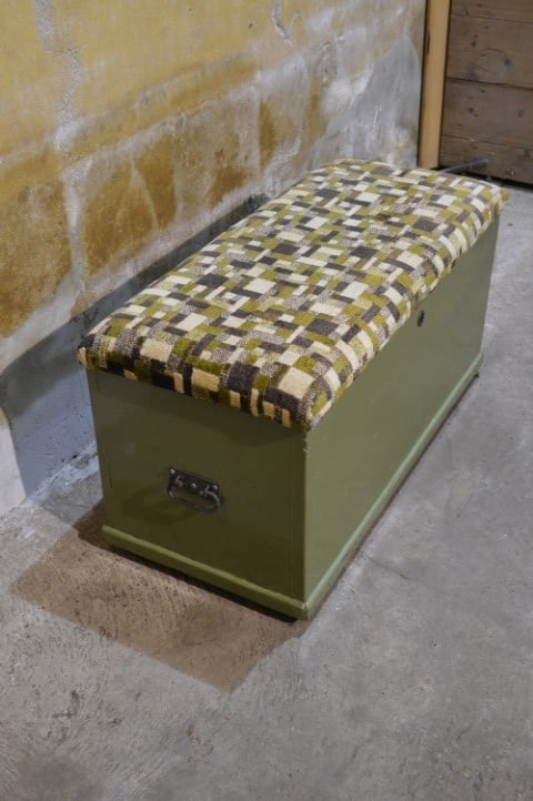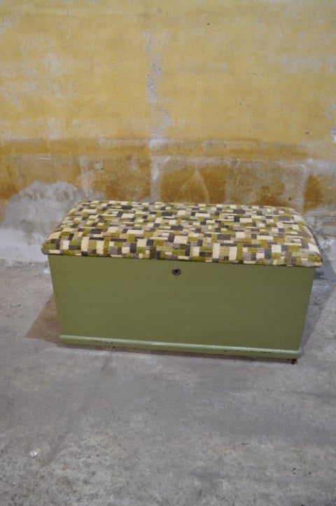 Deze oude grenen zitkist in groen met beklede deksel en opbergruimte is een decoratief en praktisch meubelstuk in één. De kist doet dienst als zitbank en opberger en past goed in een slaapkamer, hal of kamer voor jongeren. De deksel van deze klepbank is voorzien van een dikke schuimlaag en bekleed in bijpassende groentinten, wat zorgt voor extra zitcomfort. Dankzij de opbergruimte is dit meubel ideaal voor het netjes opbergen van bijvoorbeeld dekens, speelgoed of andere spullen. De kist heeft gebruikssporen passend bij de leeftijd en is behandeld tegen houtworm.