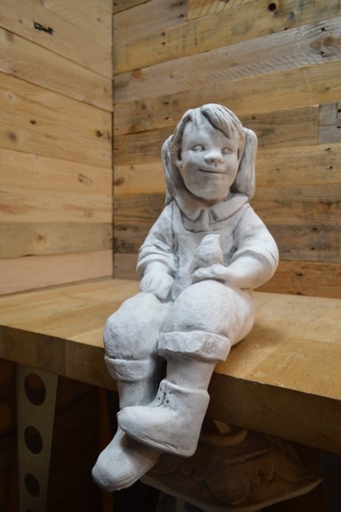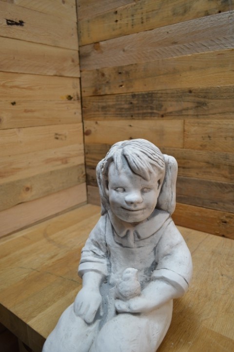 Laat dit lieve meisje met vogel jouw tuin tot leven brengen. Een charmant accent voor je tuin of terras! Dit betonnen beeld van een zittend meisje met vogel straalt rust en speelsheid uit. Met haar bungelende beentjes past ze prachtig op de rand van een muurtje, plantenbak of vijverrand. Het stevige beton maakt dit beeld geschikt voor binnen én buiten, zodat je er jarenlang plezier van hebt.