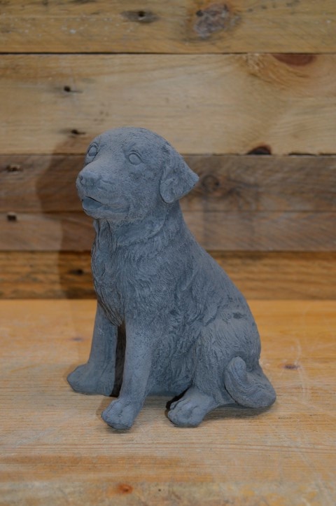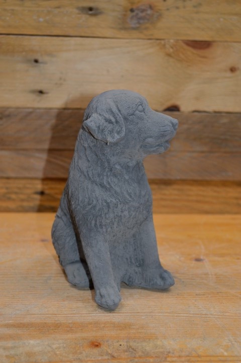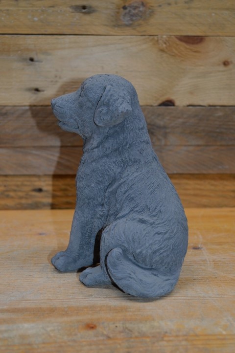 Deze lieve zittende Labrador van beton is een prachtig en sereen beeld dat zowel als tuindecoratie als herdenkingsbeeld ingezet kan worden. De natuurlijke houding en zachte uitstraling maken het beeld geschikt om bij een hondengraf te plaatsen, als eerbetoon aan een geliefd huisdier. Het beeld is gegoten uit duurzaam beton (ook wel gietsteen genoemd) en geschikt voor zowel binnen als buiten. Of u het nu in de tuin zet of een plek geeft in huis, deze viervoeter straalt rust, trouw en herinnering uit.