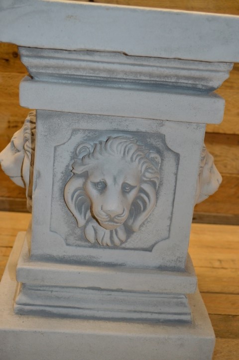 Deze betonnen zuil met leeuwenkop aan de zijkanten is een echte blikvanger voor elke ruimte. De decoratieve pilaar heeft aan beide zijkanten een imposante leeuwenkop, wat hem een klassieke en koninklijke uitstraling geeft.