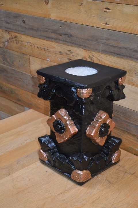 Betonnen zuil zwart met oud brons – Deze stevige kolom is perfect als sokkel voor een vaas, plant of beeld. De zuil is uitgevoerd in beton, waardoor hij prima buiten kan staan.De zwart geverfde basis met bronzen accenten geeft een klassieke en toch chique uitstraling. Omdat deze zuil al geverfd is, bieden wij hem aan voor een aantrekkelijke uitverkoopprijs.Een veelzijdige pilaar die elke ruimte net dat beetje extra geeft.