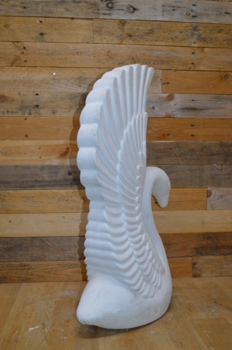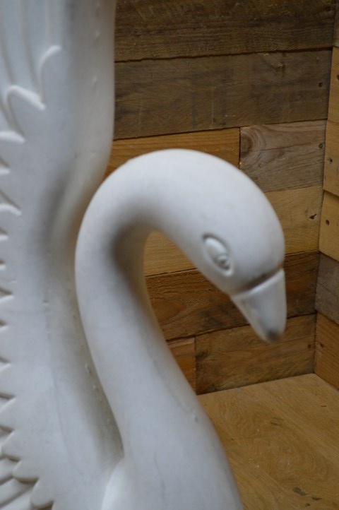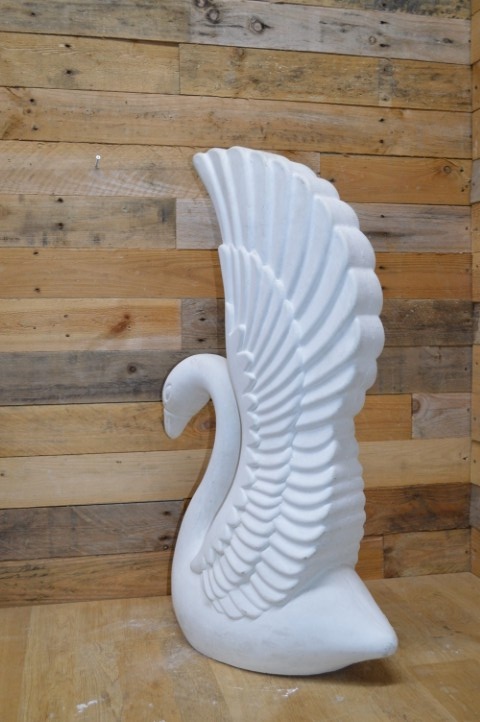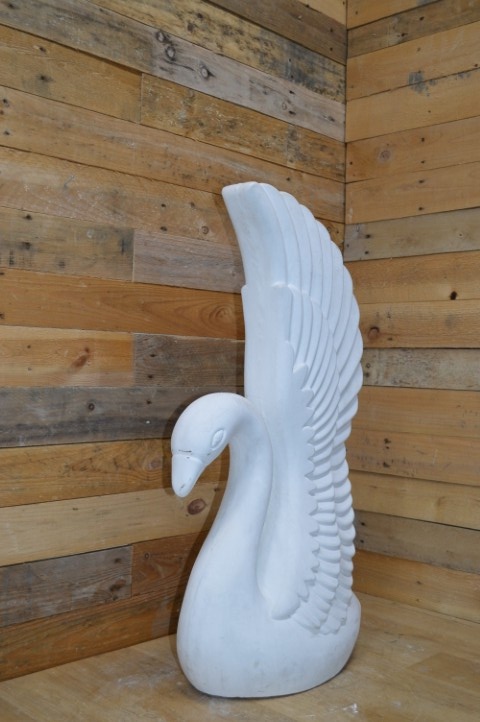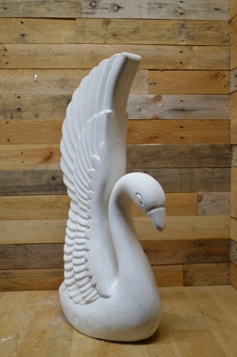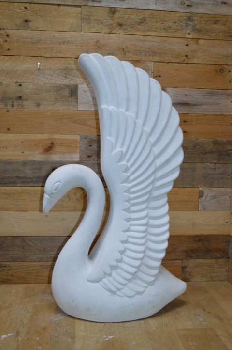 Grote betonnen zwaan is een prachtig gestileerd tuinbeeld met vloeiende lijnen en een serene uitstraling. Dit elegante beeld staat perfect als decoratief element bij een vijver, in een klassieke siertuin of centraal in een border. Dankzij het gebruik van stevig beton (ook wel gietsteen genoemd) is het beeld duurzaam en bestand tegen alle weersomstandigheden. Een charmant stuk tuinarchitectuur dat rust en schoonheid uitstraalt.